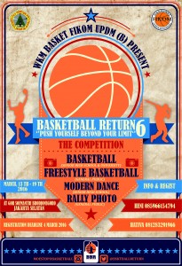 Jakarta, Media Publica – Basketball Return 6 (BBR 6) kembali digelar pada 13 – 19 Maret 2016. Event kali keenam yang diselenggarakan oleh Wadah Kegiatan Mahasiswa (WKM) Basket Fakultas Ilmu Komunikasi (Fikom) Universitas Prof. Dr. Moestopo (Beragama) (UPDM(B)) ini mengangkat tema ‘PUSH YOURSELF BEYOND YOUR LIMIT’.